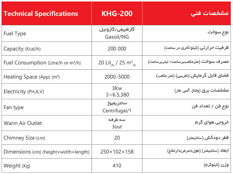 کوره هوای گرم KHG-200 ، دستگاه گرمایشی است که از طریق الکتروفن دمنده ای